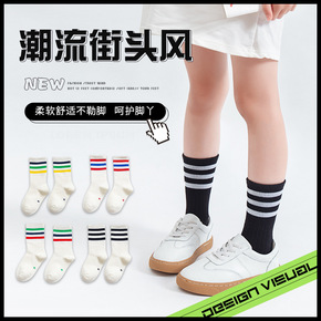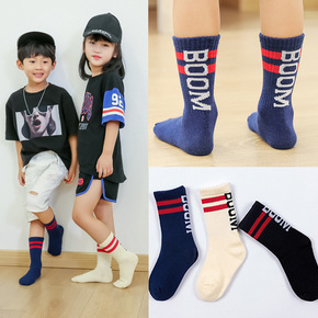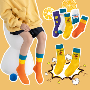 撞色系列男童女童中筒袜批发涂鸦街头嘻哈宝宝运动袜潮...