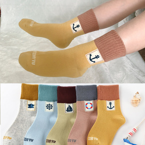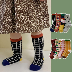 儿童袜子秋款男童女童几何拼色袜韩国插画风2021新...