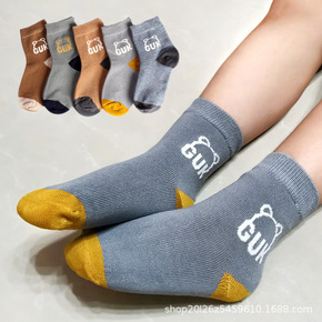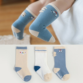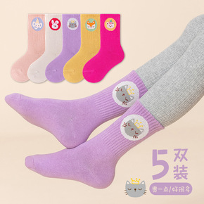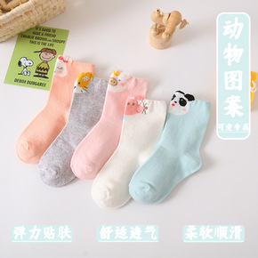 2021冬季新款儿童袜子卡通动物纯色儿童中筒袜男童...