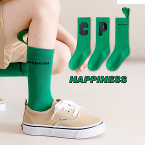儿童袜子春季新款纯色棉质薄款绿色中筒袜子中大男童质...