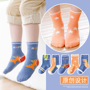 2021秋冬新款儿童袜男新疆棉中筒袜男童蓝色恐龙中...