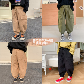 男童工装裤春秋款儿童长裤洋气2022新款韩版字母小...