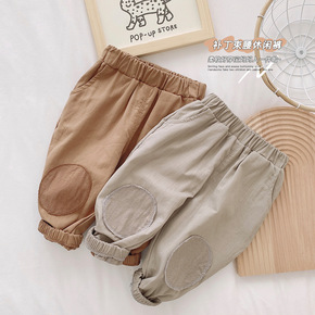 膝盖补丁裤男童英伦风春装纯色宽松休闲女宝宝洋气绣元...