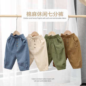 2022夏季童装裤子男童五分裤宝宝纯色休闲中裤小童...