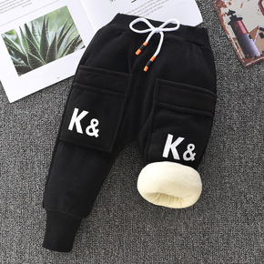 男童加绒裤子一体绒秋冬保暖宽松休闲裤童装学生洋气加...