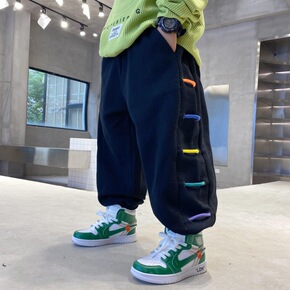 儿童裤子2021年冬款加绒加厚棉裤舒适运动休闲裤中...