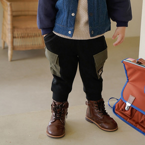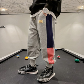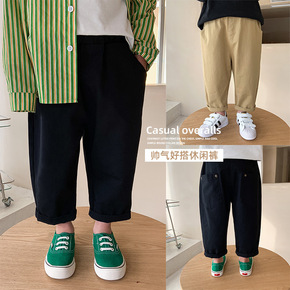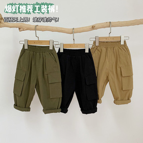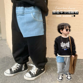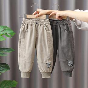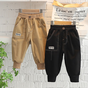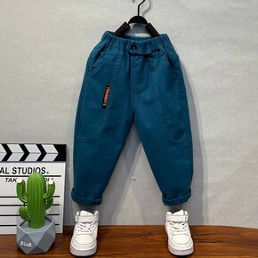21秋季男童纯棉毛圈裤子男宝牛仔裤工装休闲裤韩版1...