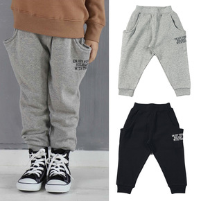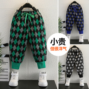 男童裤子春秋款天鹅绒针织萝卜裤宝宝宽松长裤小童哈伦...