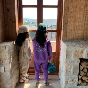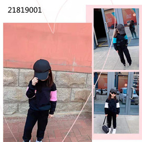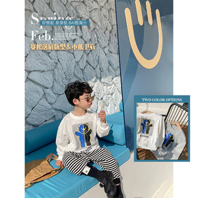 90-170秋季棉盖丝儿童卫衣套装字母印花后背翅膀...