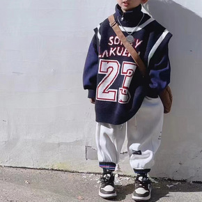 2021秋冬新款韩国童装中小童加绒加厚宽松条纹套头...