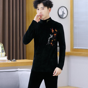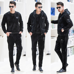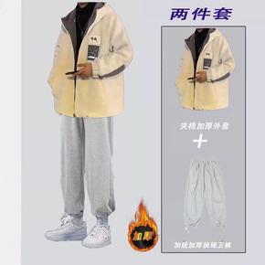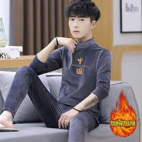 九创套装男丨金丝绒运动套装织带加绒加厚两件套男装运...