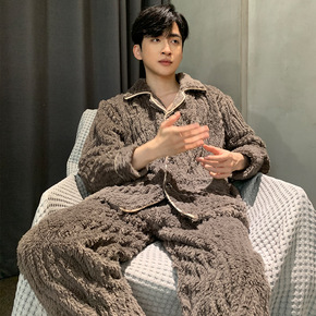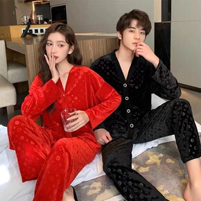 2022春秋冬德绒保暖男女士亲肤翻领情侣家居服睡衣...