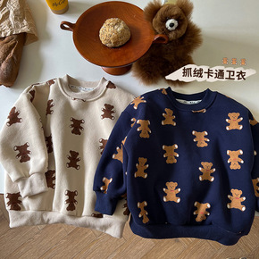 2022秋冬新款韩国儿童抓绒大卫衣卡通小熊印花外套...