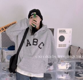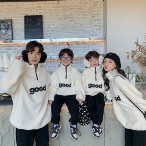 聪小妹2021冬款 亲子装韩版加绒字母连帽宽松卫衣...