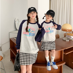 一起玩亲子装母女网红炸街插肩袖撞色卫衣韩版女童拼色...