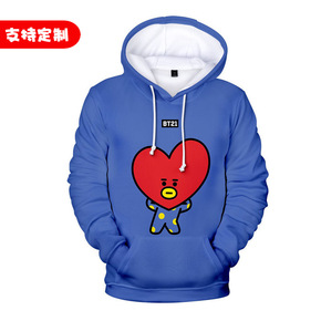 团队卡通可爱成人童装韩国男子组合团队宽松带帽卫衣...