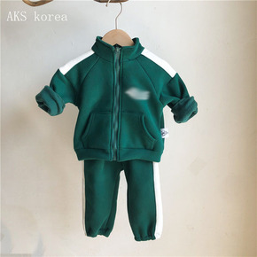 韩版童装2021秋冬男女童加绒电视剧同款套装外套休...