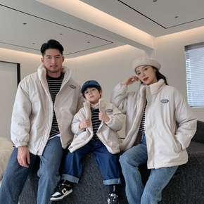 家庭装秋冬韩版加厚保暖羊羔绒外套中小童两面穿亲子装...