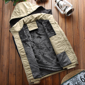 冬季新款加绒加厚户外休闲棉衣男可脱卸帽冲锋衣外套男...
