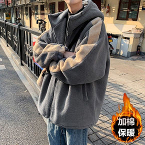 冬季连帽羊羔绒棉衣男加绒加厚宽松棉袄纯棉外套休闲中...