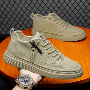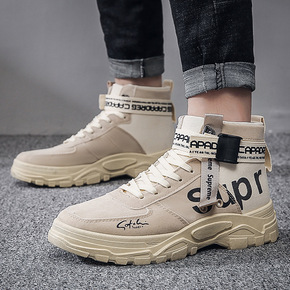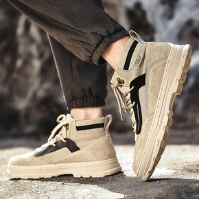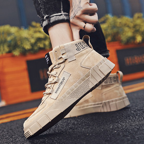 秋季男鞋工装潮鞋马丁靴男高帮板鞋男士休闲冬季加绒保...