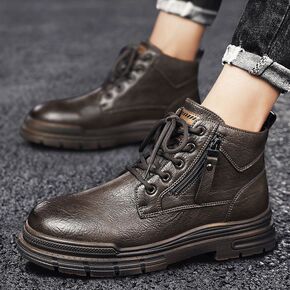 2021秋冬季男马丁靴子加绒保暖户外雪地靴拉链高帮...