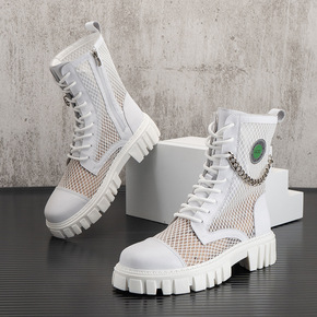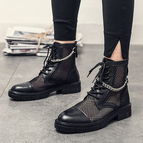 网纱马丁靴男夏季薄款镂空凉靴男士透气内增高网靴子高...