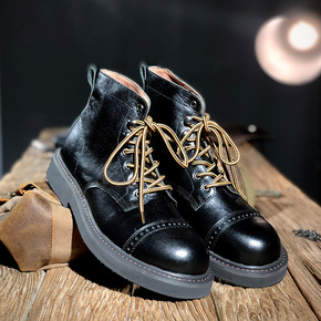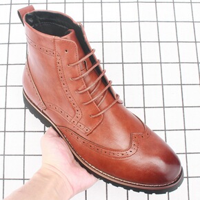 时尚潮流新款马丁靴男布洛克雕花英伦短靴子皮鞋高帮工...