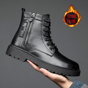 冬季新款男士真皮马丁靴加绒保暖头层牛皮休闲高帮棉鞋...