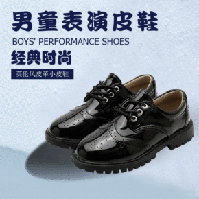 黑色镂空皮鞋 英伦风前系带皮质粘胶鞋 学生徒步低帮...