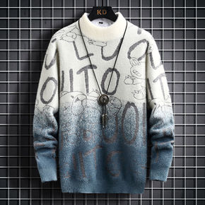 新款男士毛衣渐变情侣男女同款潮流线衫男装#发一件代...