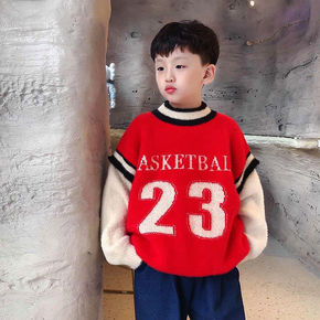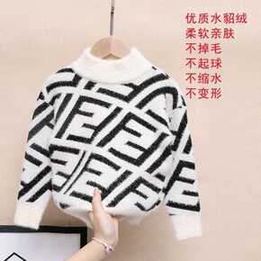 男女童水貂绒毛衣套头儿童针织衫新款洋气中大童男孩打...
