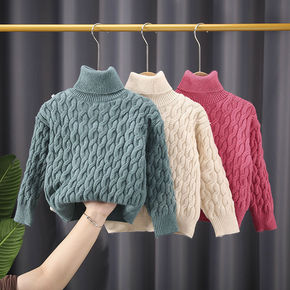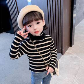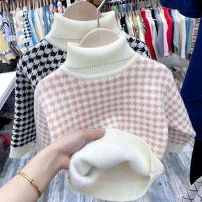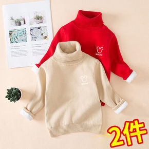 儿童高领毛衣男女童针织打底衫加绒加厚保暖衣中大童水...