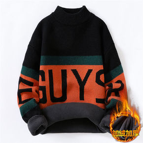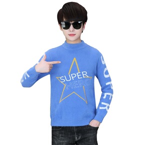 初中高中学生13岁男孩水貂绒毛衣大童14帅气针织衫...