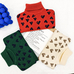 TIANYI2021秋冬韩版儿童针织毛衣纯色爱心高...