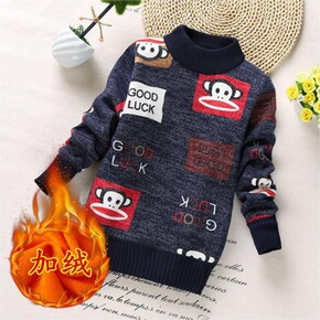 男童毛衣秋冬款加绒加厚中大童套头毛线衣童装儿童保暖...