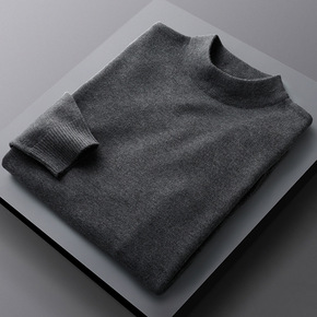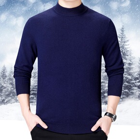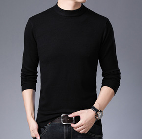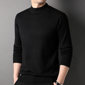 批发秋冬季半高领毛衣男圆领纯色中领毛线衣打底衫内搭...