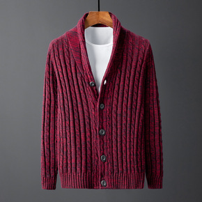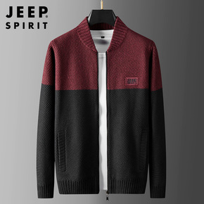 男装冬季新品上衣夹克加绒加厚时尚立领男士针织毛衣外...