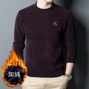 2022新款男士雪尼尔毛衣加绒保暖圆领针织衫男冬季...