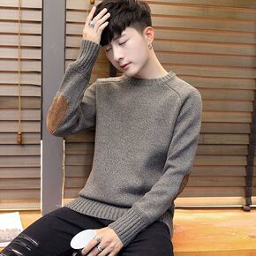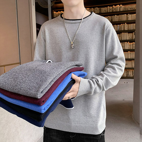秋冬新款 圆领套头打底毛衣男士长袖宽松商务休闲内搭...