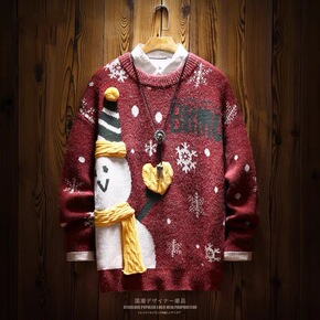 港风新款加厚圆领毛衣男韩版宽松慵懒风秋冬季潮流针织...