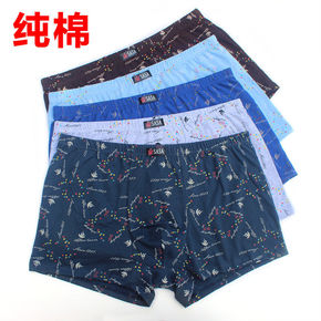 新款纯棉6条3条男士平角内裤中腰宽松印花青年中年大...