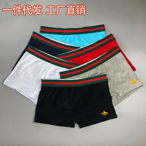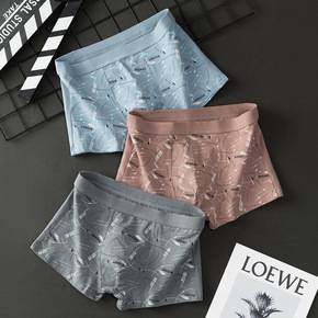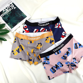 新品男士内裤纯棉平角裤时尚印花个性青年韩版全棉短裤...