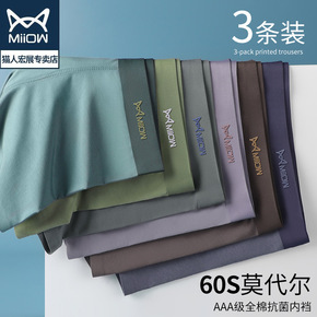 猫人莫代尔无痕男士内裤男纯棉裆平角短裤四角透气大码...