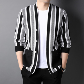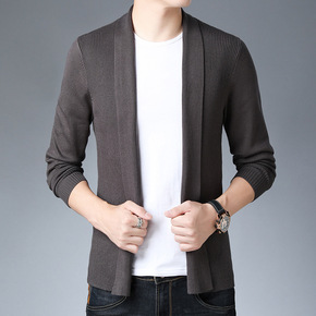 秋冬男式开衫新款现货青年长袖修身型针织披肩休闲拼色...