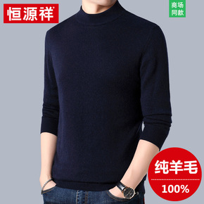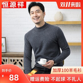 恒源祥羊毛衫男半高冬季加厚保暖中年纯色打底衫圆领套...