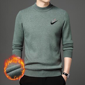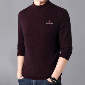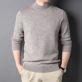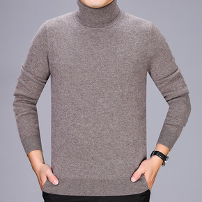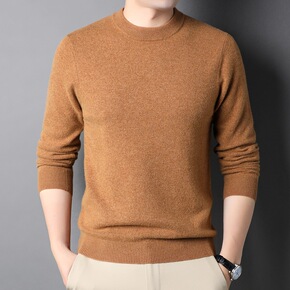 羊毛衫男士冬季中年加厚半高领新款纯色针织衫100羊...