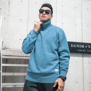 2021冬季新款长袖羊毛衫男简约休闲拼色半高领中青...