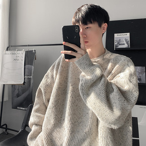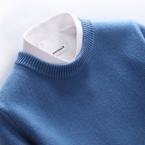 圆领男士羊毛衫宽松休闲毛衣加厚大码长袖打底衫纯色秋...