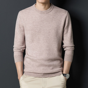 2021冬季新款男士100纯羊毛衫圆领保暖毛衣爸爸...